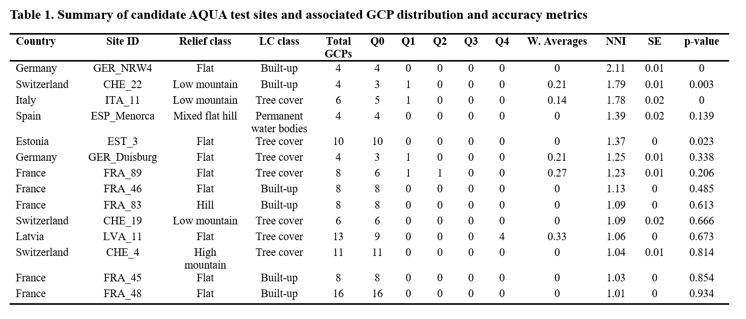 Selection of Suitable AQUA Test Sites for Ground Control Point (GCP) Validation (2025)